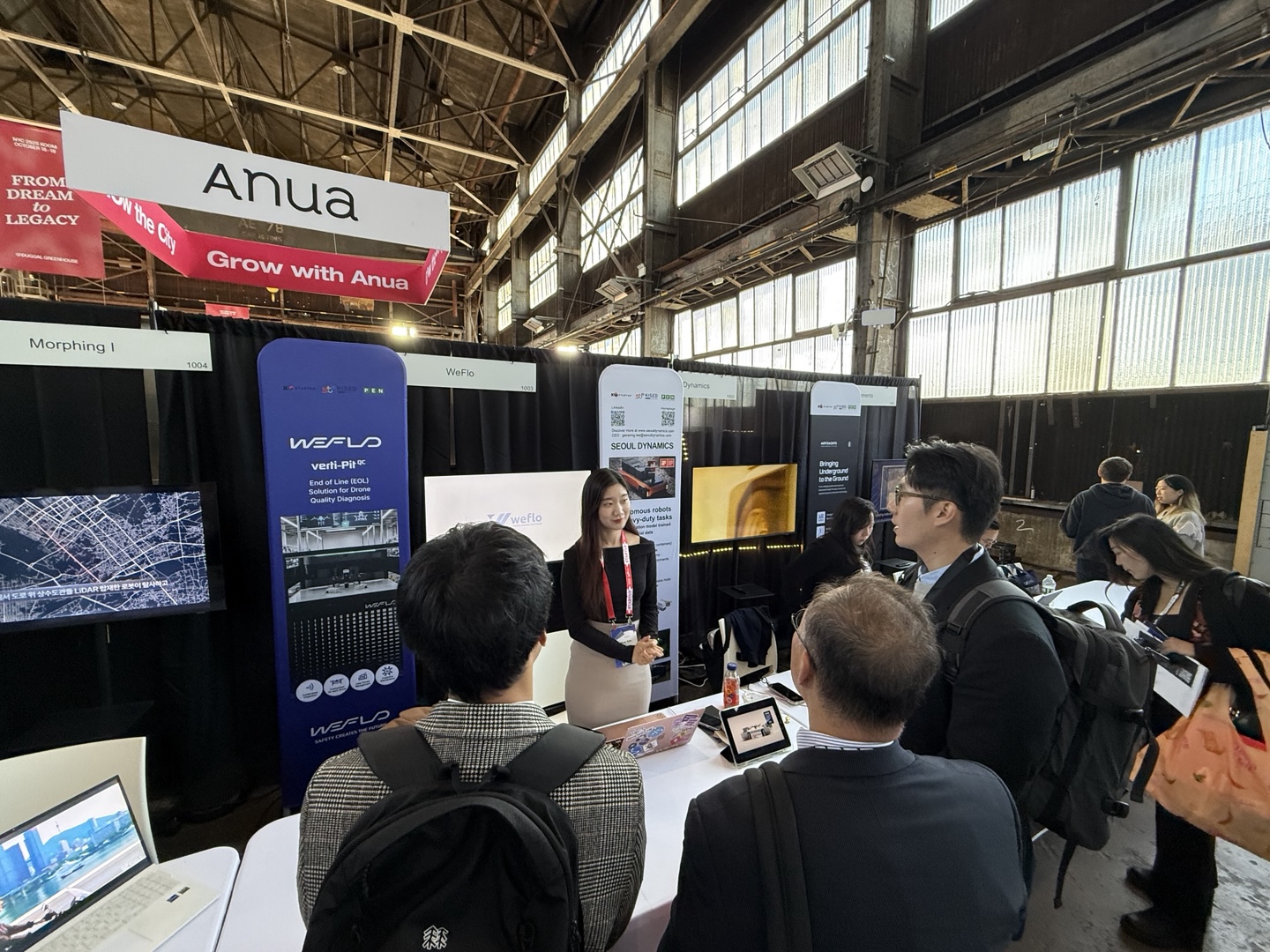 The companies—Movements, PhyxUp Health, WEFLO, morphingI, and Seoul Dynamics—presented commercially deployed AI solutions currently generating revenue in infrastructure, healthcare, aviation, and industrial automation sectors.
